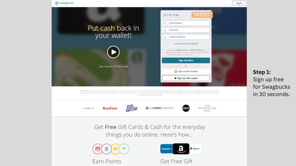 1. Sign up for Swagbucks. It’s free and takes 30 seconds to join.