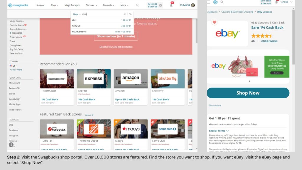 Cash back rebates are usually 1% or 2%, but on occasion, you can score better. And if you’re new to Swagbucks, or making your first purchase from the Swagbucks shopping portal, you can get a free $10 gift card. Make a purchase of $25 or more at eBay.com or other featured stores (over 10,000), and you’ll get a free $10 gift card for Amazon, eBay, or another store.