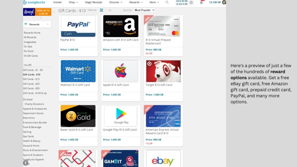 After you have the $10+ credited to your account, visit the Swagbucks rewards page to cash out.