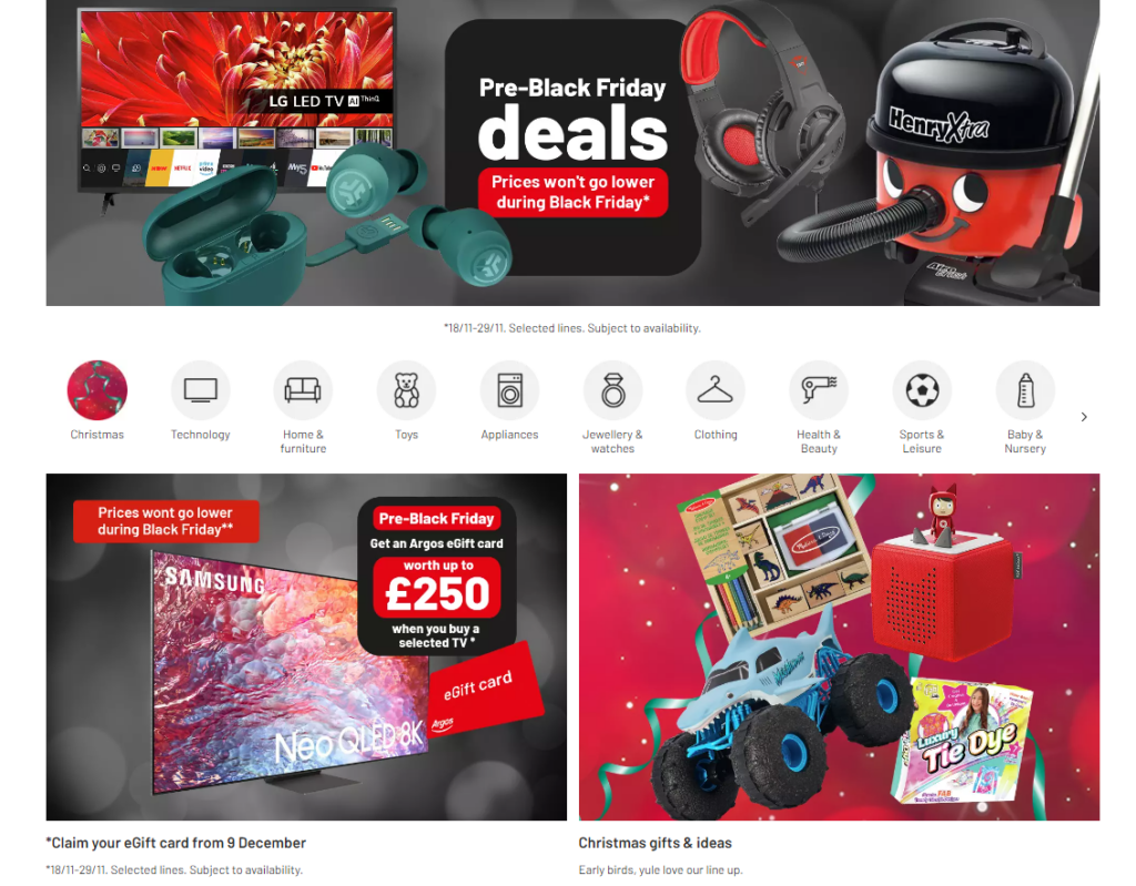 But based on recent years’ Black Friday promotions, look for Argos to start offering Black Friday sale deals 1-2 weeks ahead of the actual Black Friday holiday.