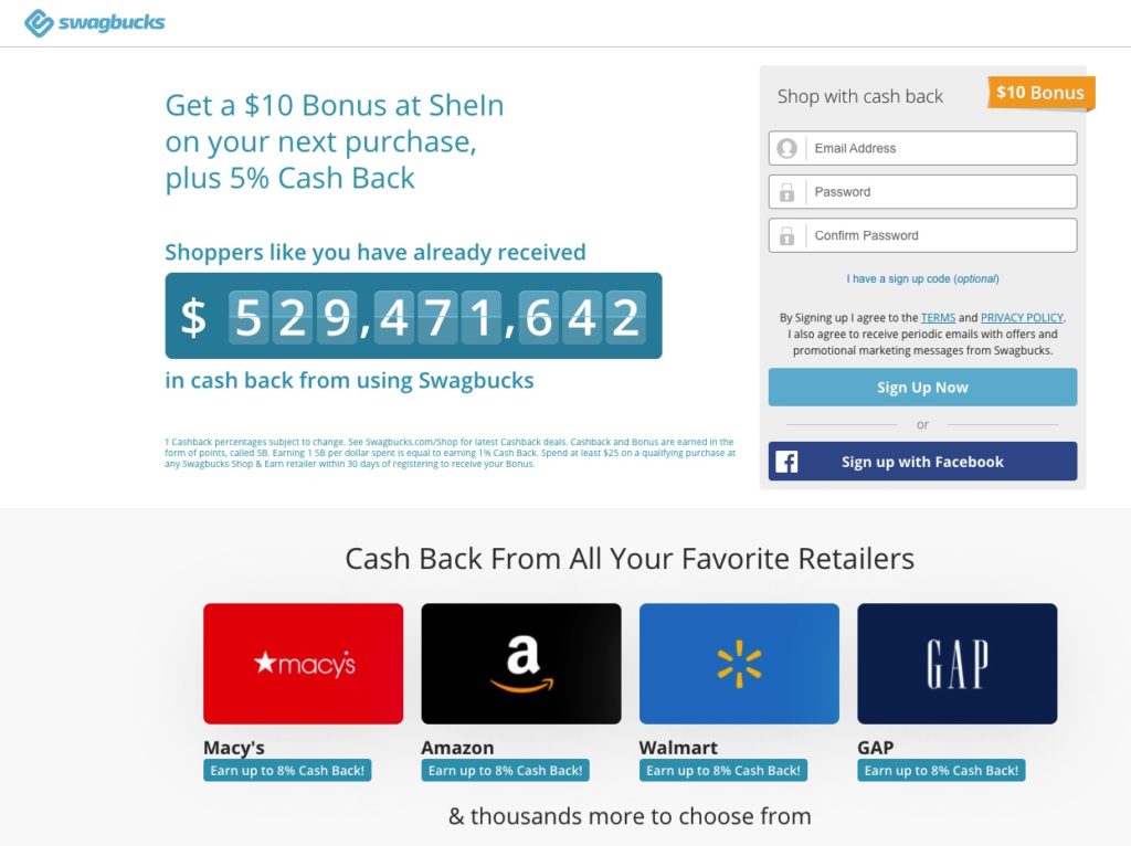 Customers new to Swagbucks can get a $10 cash bonus for their next shopping trip at Shein, or over 5,000 other participating stores.