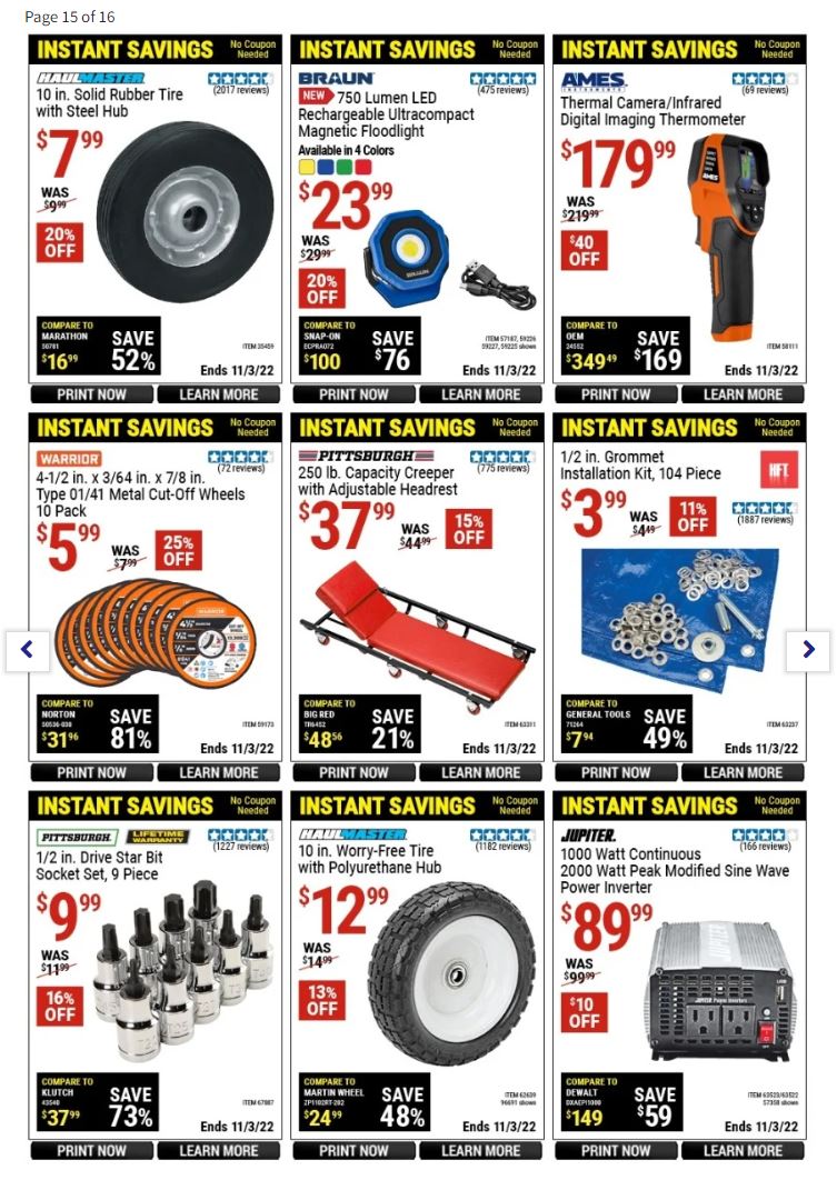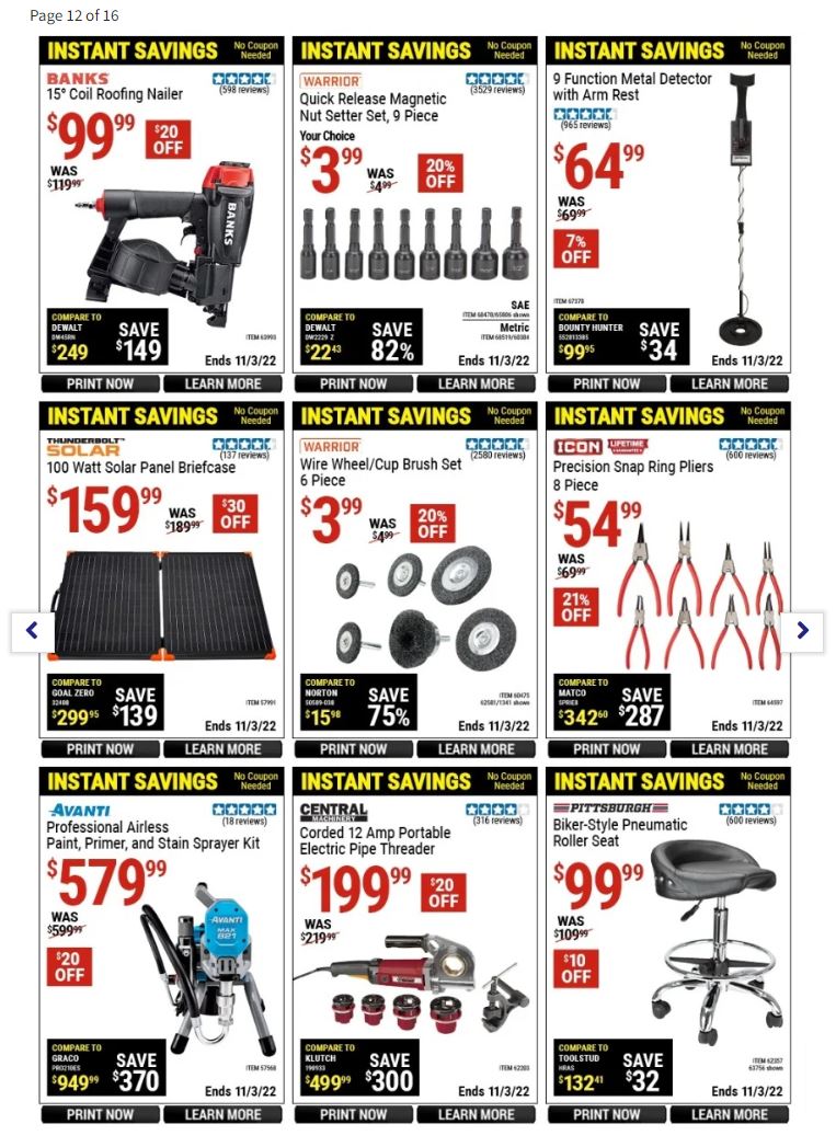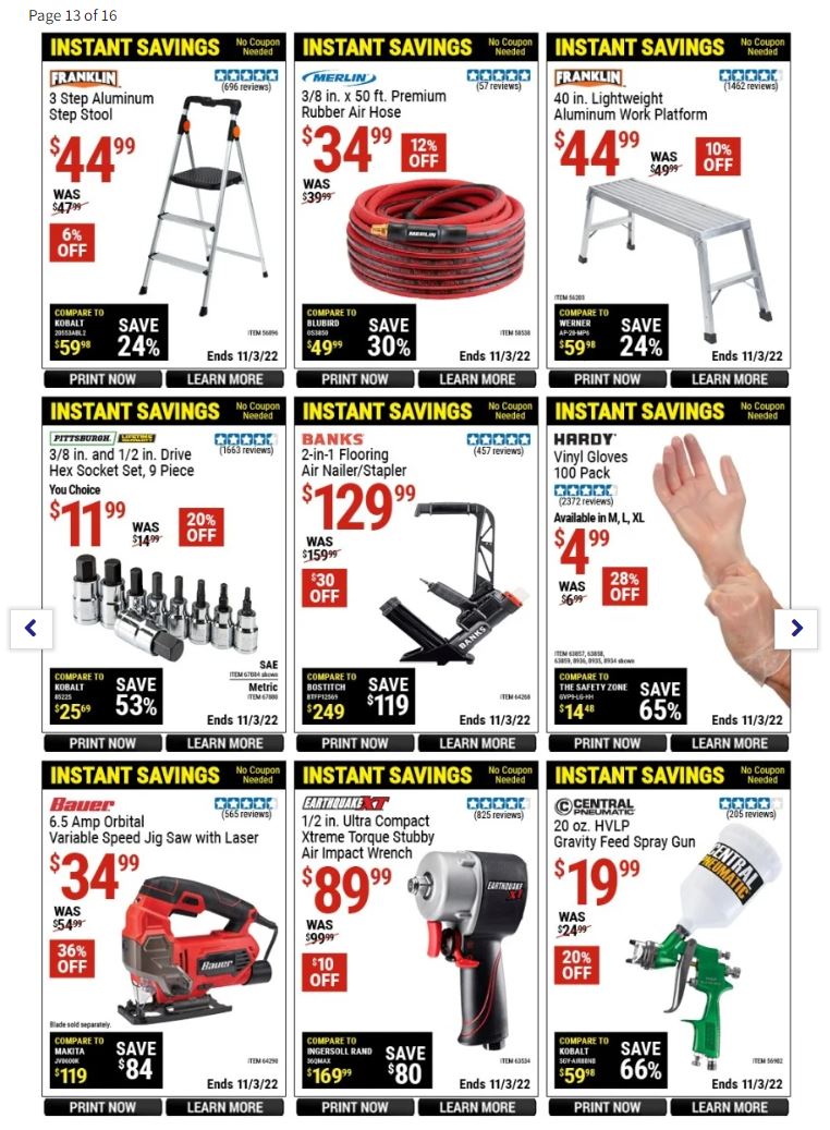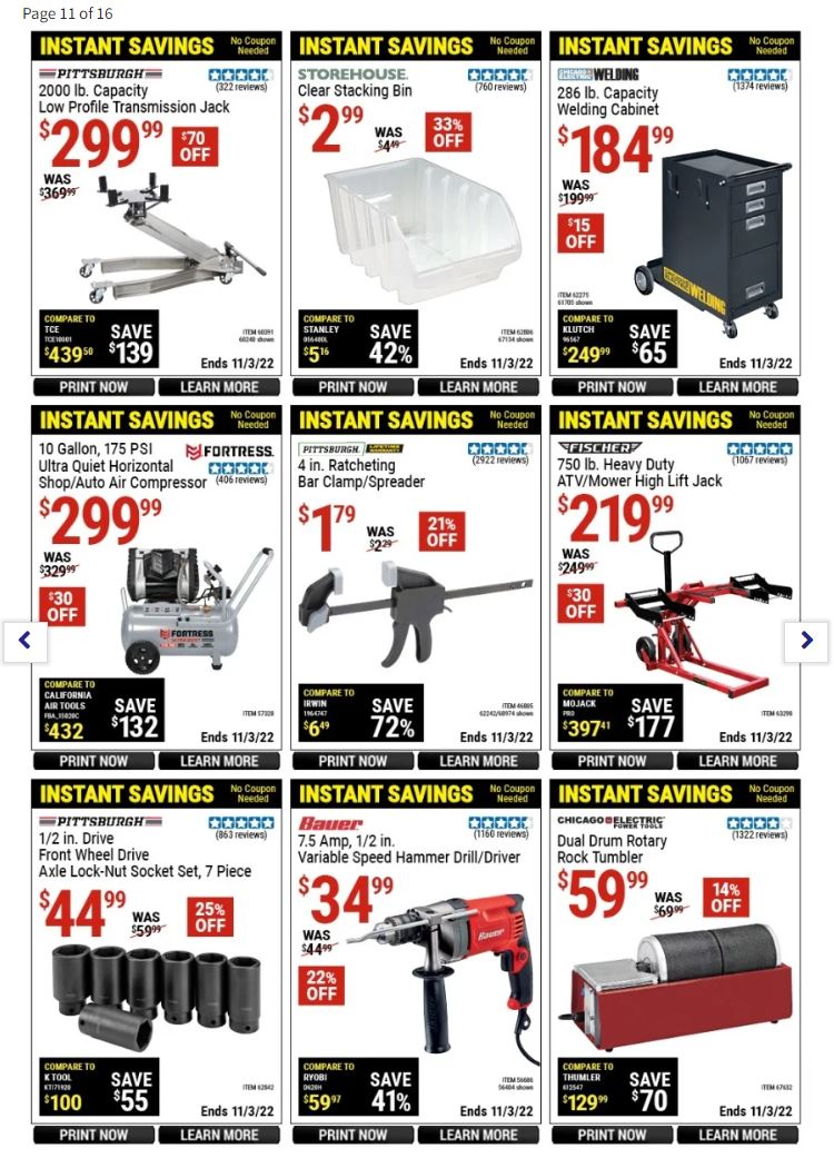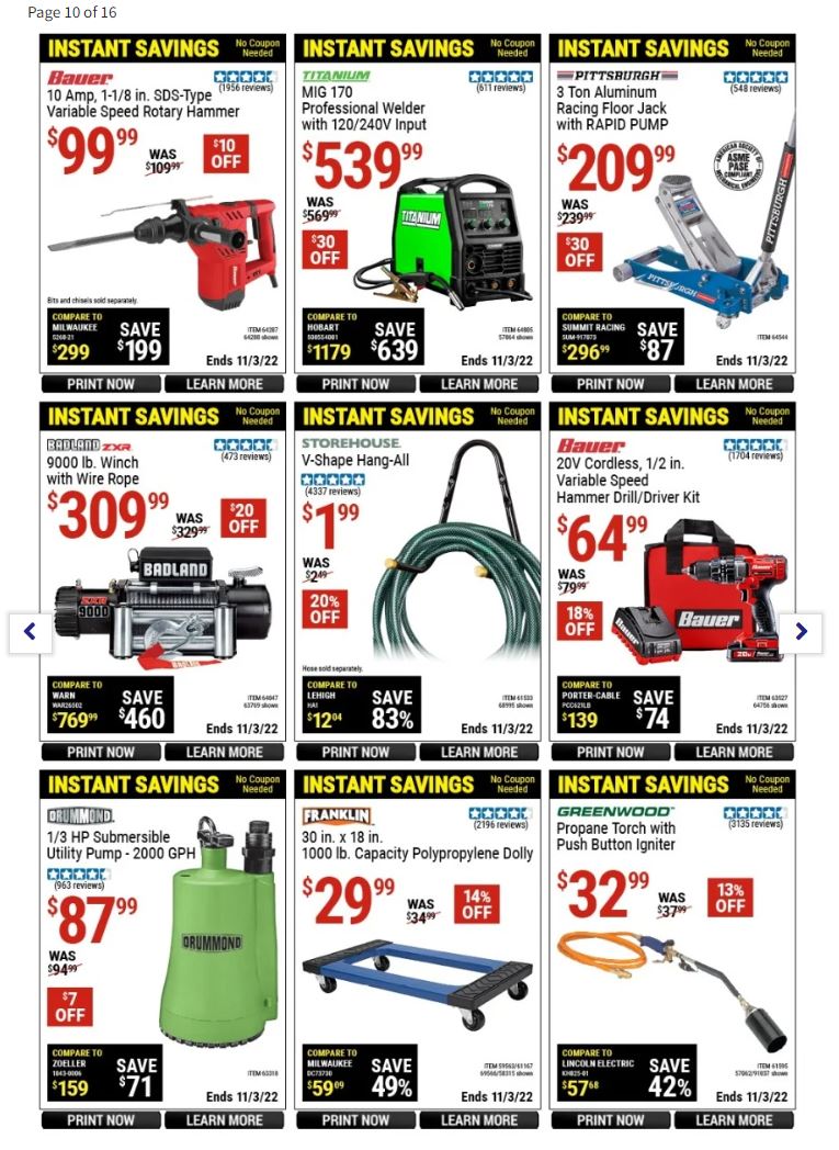 Some of the best deals on Harbor Freight Tools include: