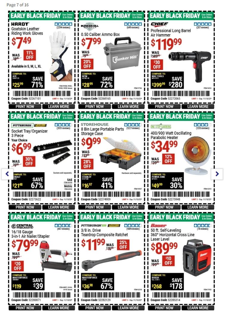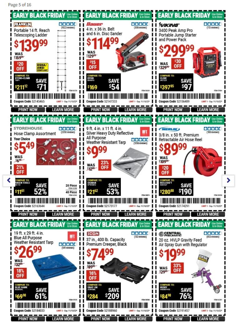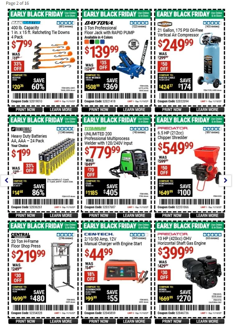While the Harbor Freights Black Friday ad scan isn’t yet available, based on Harbor Freight Black Friday sales prices last year, we know what to expect for Harbor Freight Tools Black Friday 2022. We expect this year’s sales prices and deals to be similar to what we saw last year.