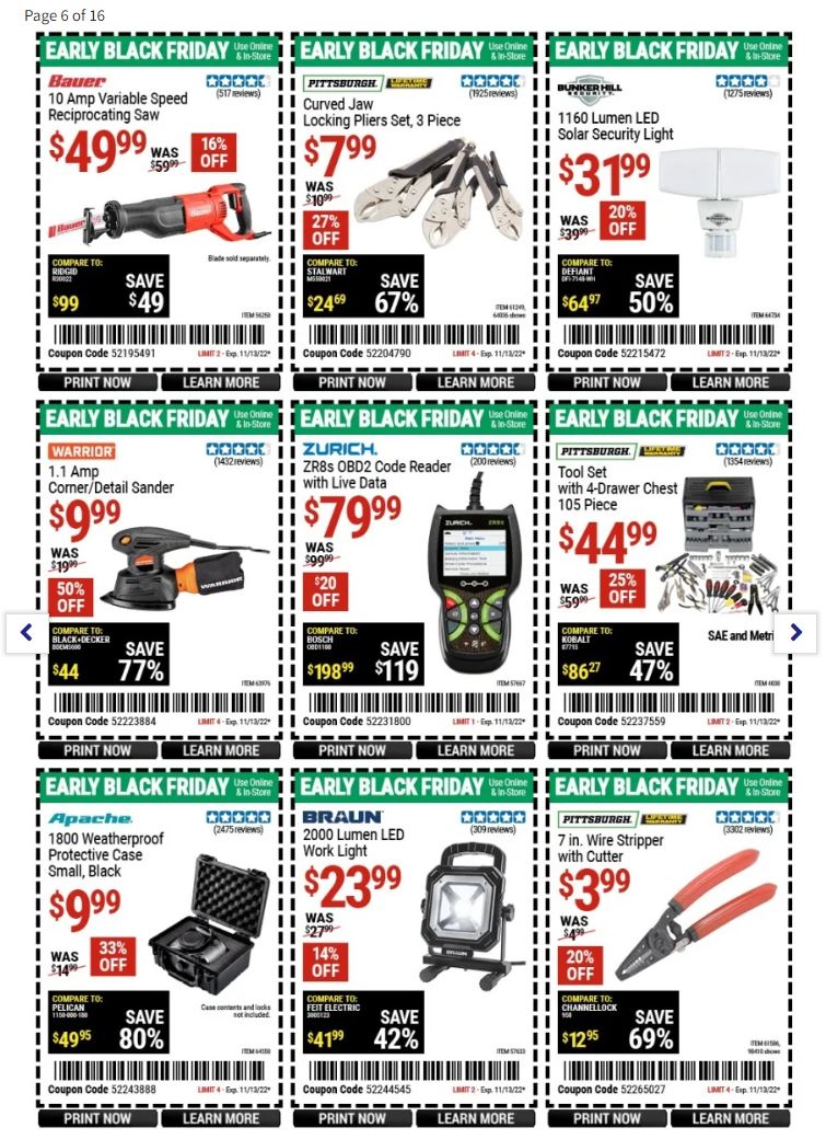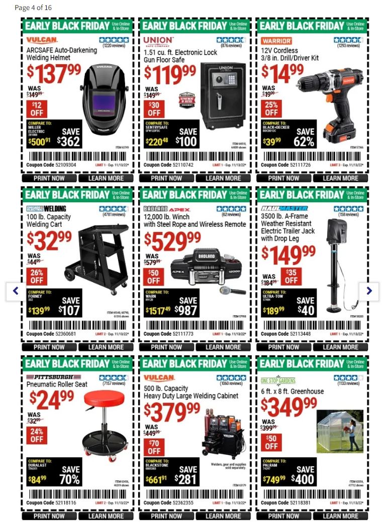 Members of the Inside Track Club can get Black Friday prices 2 days early, both online or in Harbor Freight stores.