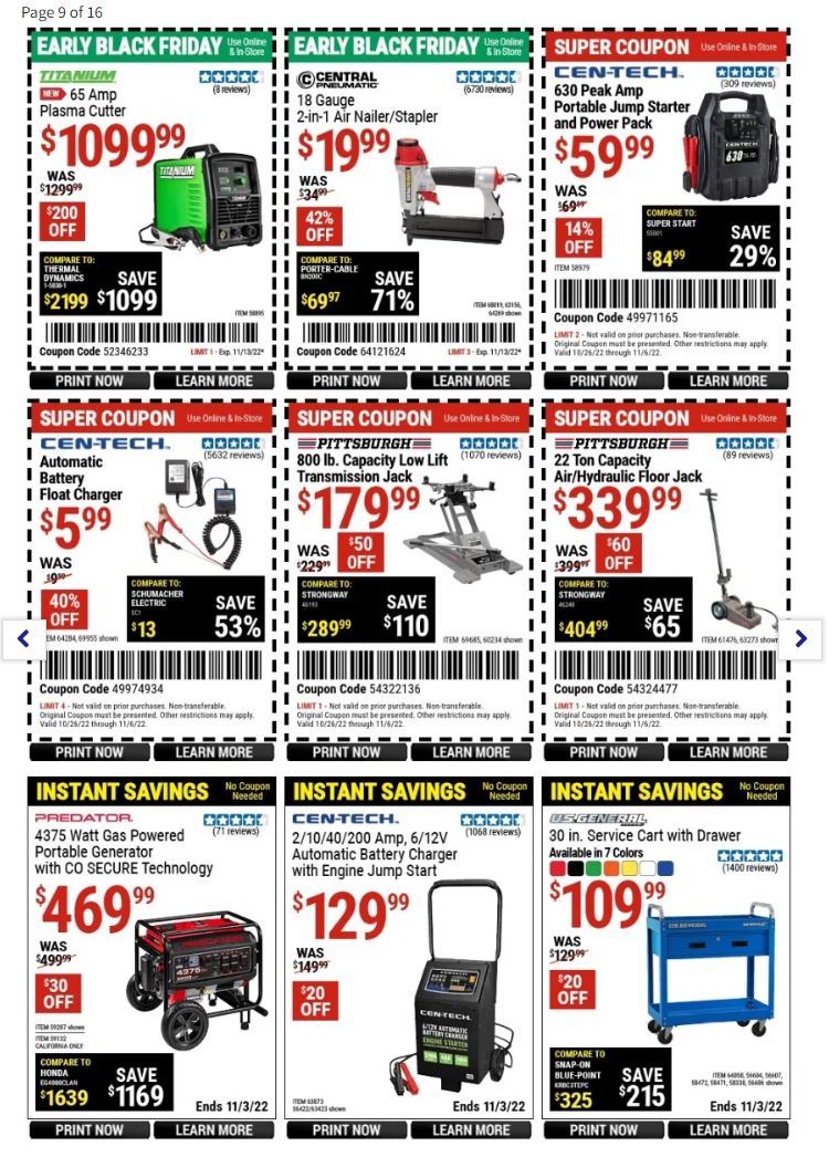 Make sure to bookmark this page and check back. Once the Harbor Freight Black Frida ad is live, we’ll be able to confirm these amazing deals and sales prices, as well as Harbor Freight Tools Black Friday store hours.