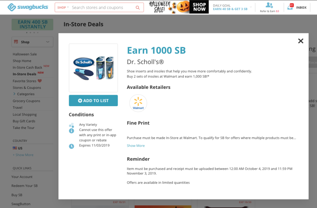 Say goodbye to couponing! Now you can add everyday items to your shopping list at Swagbucks, upload your receipt, and get instant cash back! Follow these 8 simple steps to get $10 cash back when you buy two sets of Dr. Scholl’s insoles at Walmart.
