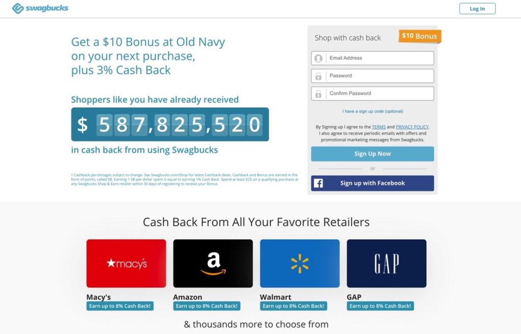True! Cash back amounts for shopping at Old Navy can range from 2% to 15%, or even more on special occasion. This is available for all Swagbucks members, not just brand new members. You can earn cash back each and every time you shop at OldNavy.com. Just visit the retailer from Swagbucks’ Old Navy page. If you’re not a member of Swagbucks, you can sign up for free in under 30 seconds and claim that sweet $10 signup bonus. And make sure to add the SwagButton so you never miss a cash back opportunity on Old Navy or thousands of other featured retailers.