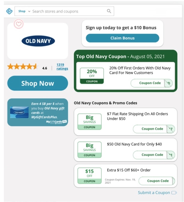 New members: spend $25 or more at Old Navy or another featured retailer and get a $10 gift card to Amazon, Old Navy, or another retailer of your choice.