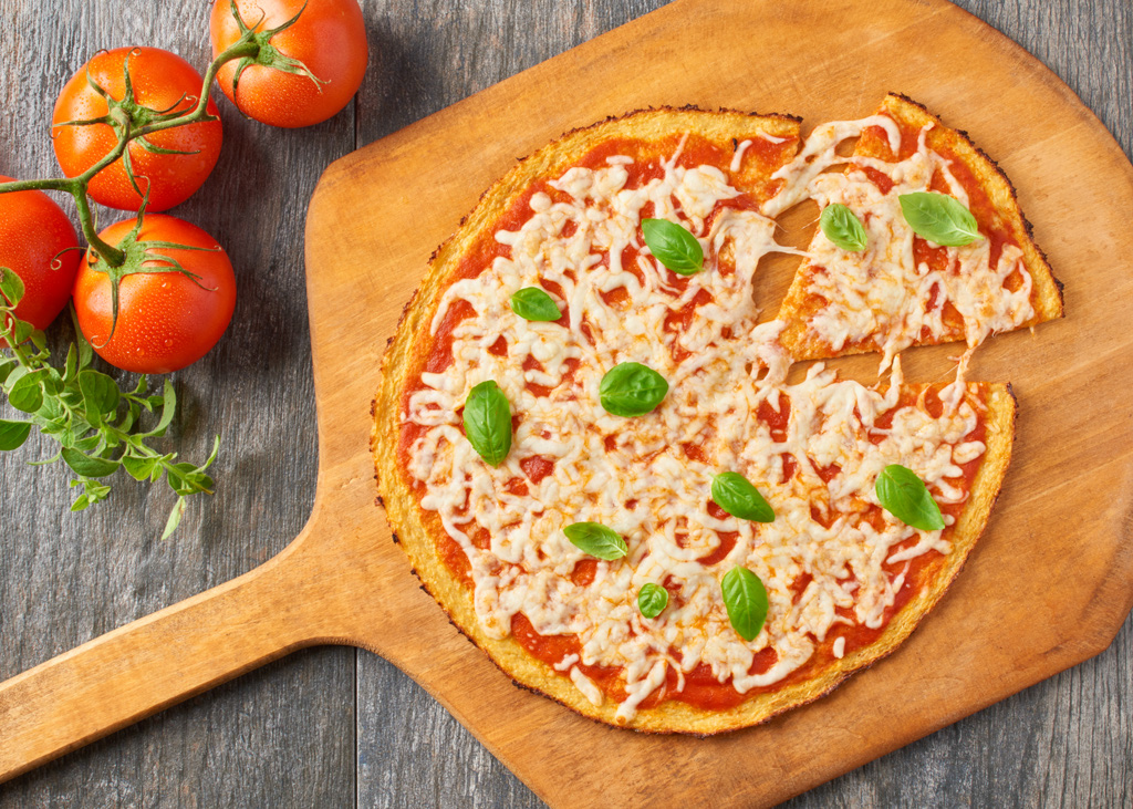 - Spray baking sheet with nonstick cooking spray. Press cauliflower mixture into an 11-inch circle.
