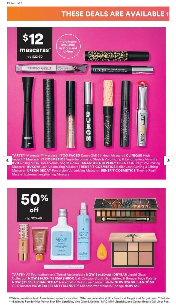 Categories on sale: Select mascaras for $10, BOGO on sheet masks, and discounted holiday sets (40 to 50% off)