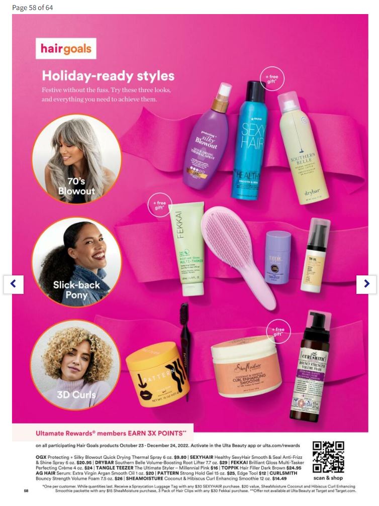 • Earn free products and beauty services with Ulta Rewards, Ulta’s loyalty program. Earn points with every dollar you spend to redeem for rewards.